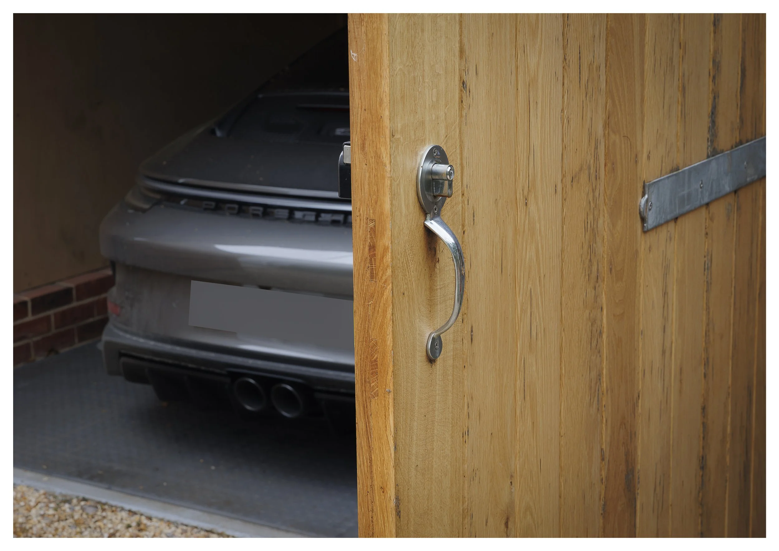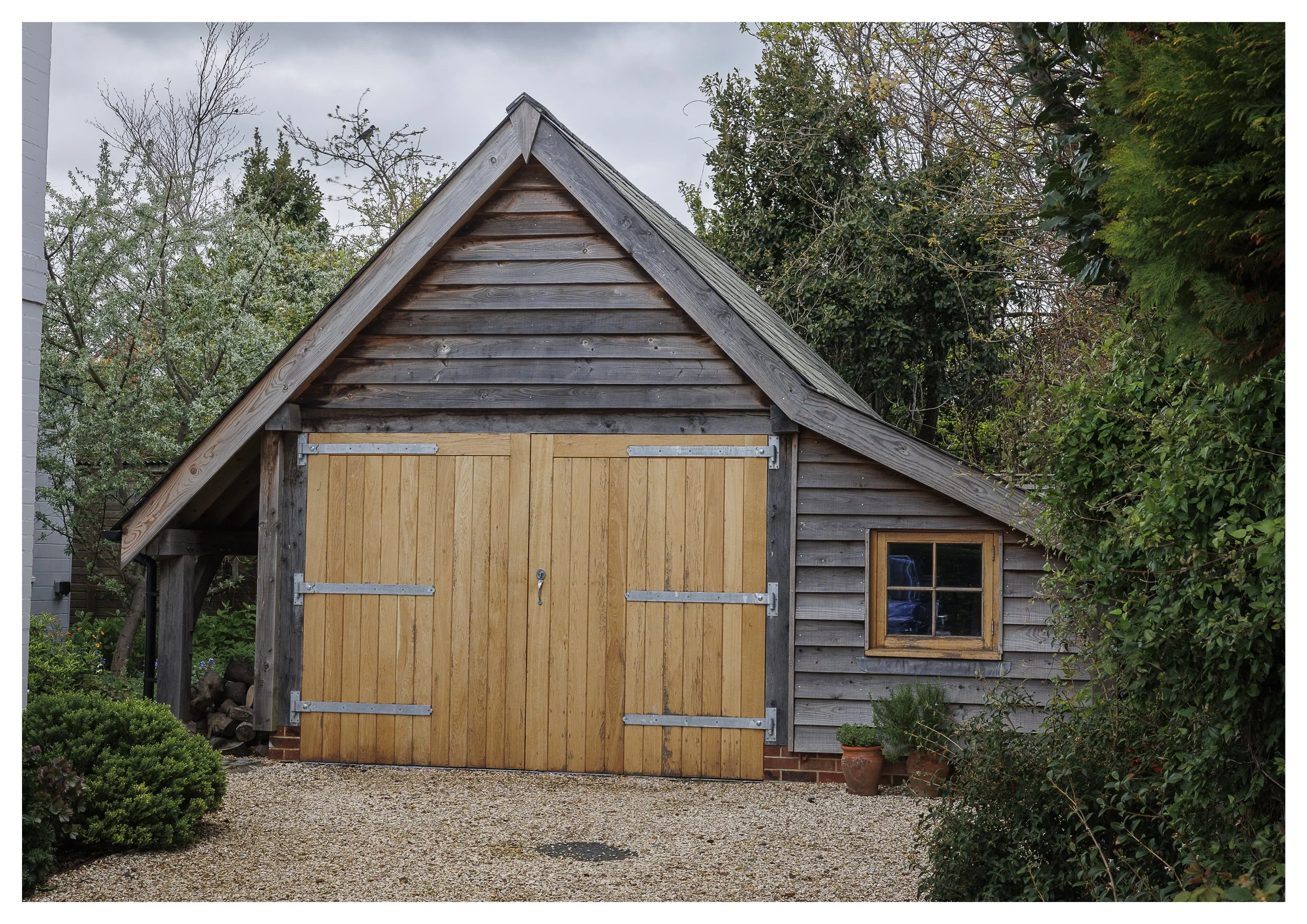 Oak Framed Single Garage and Log Store A single oak framed garage with extra space and log store. Outward opening, remote control doors. Oak side door for ease of access. Contact Client